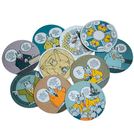 Sous-verre en carton, vendus par lot de 10 (10 gags différents).