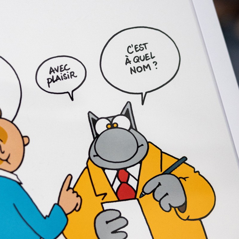 Embossage (tampon 3D du Chat) au bas de l'estampe.