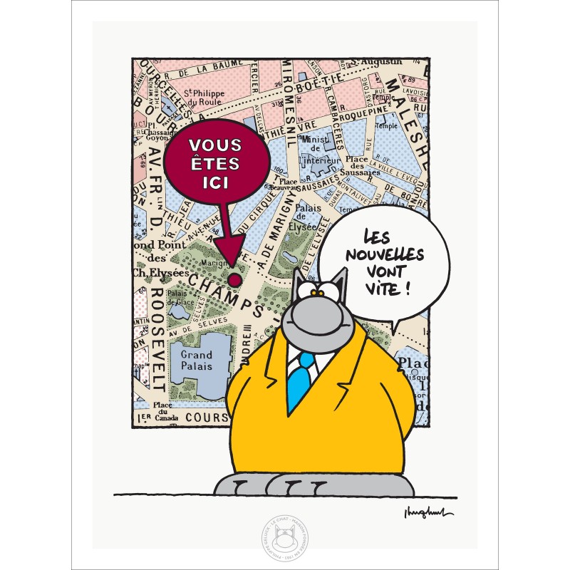 Embossage (tampon 3D du Chat) au bas de l'estampe.