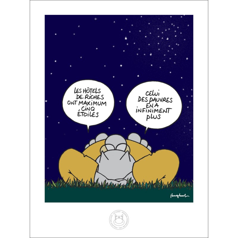 Embossage (tampon 3D du Chat) au bas de l'estampe.